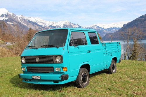 Der DOKA hat 174‘000 Km und ist in einem excelenten Zustand. Die Sitze sind mit Alcantara überzogen mit lila Keder. Türverkleidung und Brücke sind aus Riffelblech exakt angefertigt und ausgekleidet. Mit seiner Lackierung ist der Bulli ein wenig ein Show – Fahrzeug es wurde sehr viel investiert. Ausgestattet ist der Bulli mit einem Wassergekühlten 2.1 Lt. Heck-Boxermotor mit Katalysator. Auspuffanlage und Kupplung komplett neu. Das ideale Fahrzeug für Just and Fun!